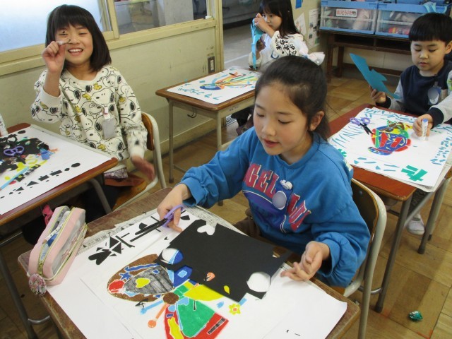 そして、周りに好きな形や模様をはって額縁をつくりました。