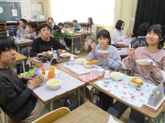 揚げパンは中学校の卒業式の日だけにでるメニューです。