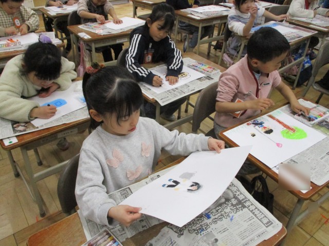ということで給食や校外学習、スポーツ大会などの絵をかきました。
