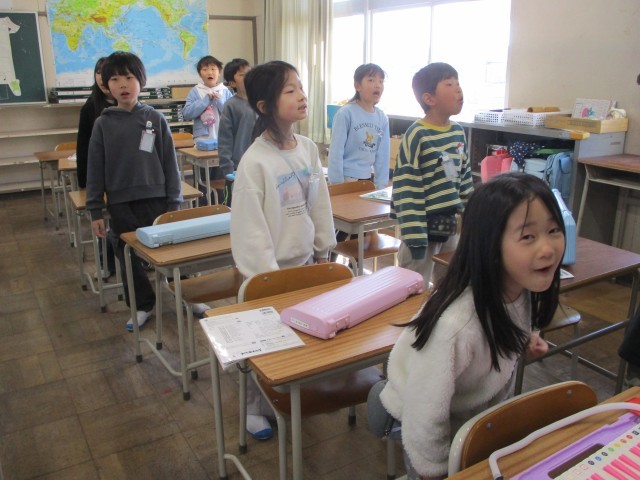 音楽の時間に「あの青い空のように」という曲を元気よく歌いました。