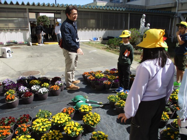 卒業生の門出を祝うために育ててきた花で、会場を華やかに彩ります。