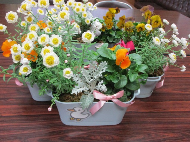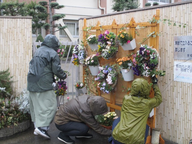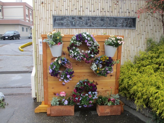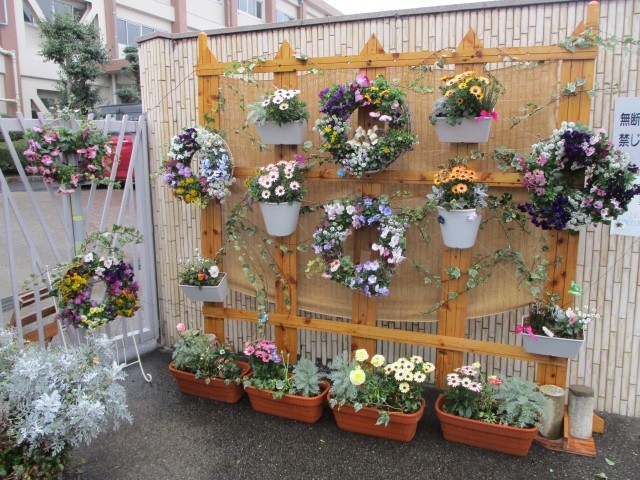 卒業式を前にガーデニングボランティアさんが正門付近を花でいっぱいにしてくださいました。