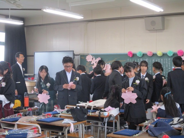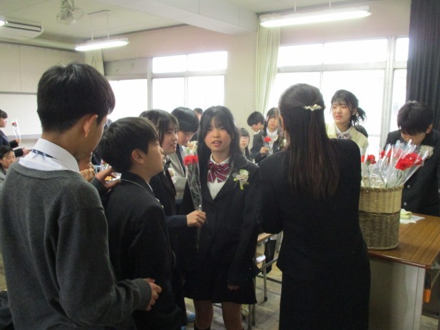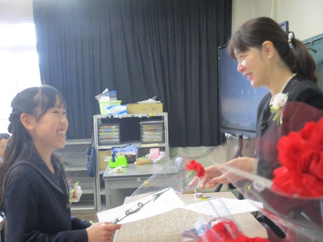 卒業式後には、1人1人担任の先生から卒業証書を貰いました。また、クラスや友達、担任の先生と記念撮影をしたり、お話をしたりなど、小学校最後の時間を楽しく過ごすことができました。小学校生活での思い出を胸に、中学校でも活躍してほしいと思います。