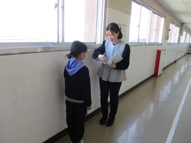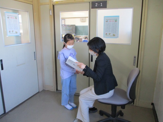 担任の先生から子どもたちの頑張りを添えてひとりひとり「あゆみ」を渡しました。