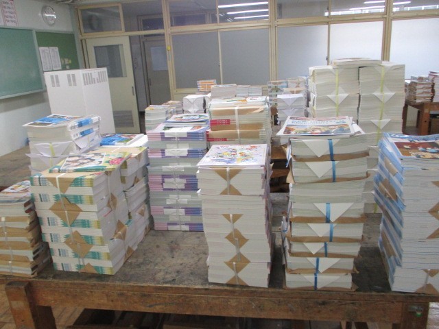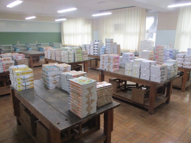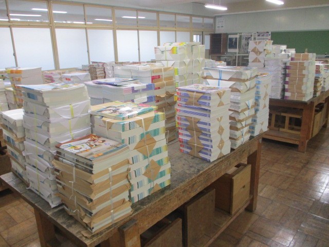 今日は図工室に、新しい教科書がたくさん届きました。段ボールいっぱいの教科書を見て、「いよいよ新学年が始まるな」とわくわくしています。