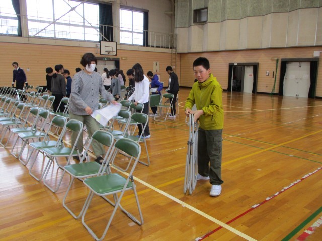 4/7 6年 入学式の準備(式場準備)