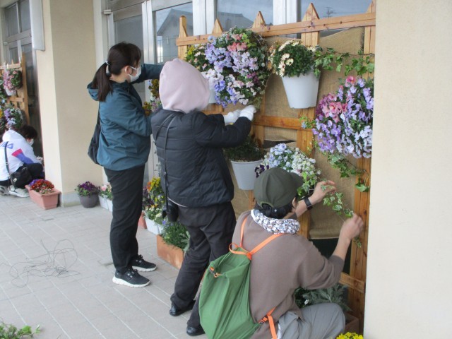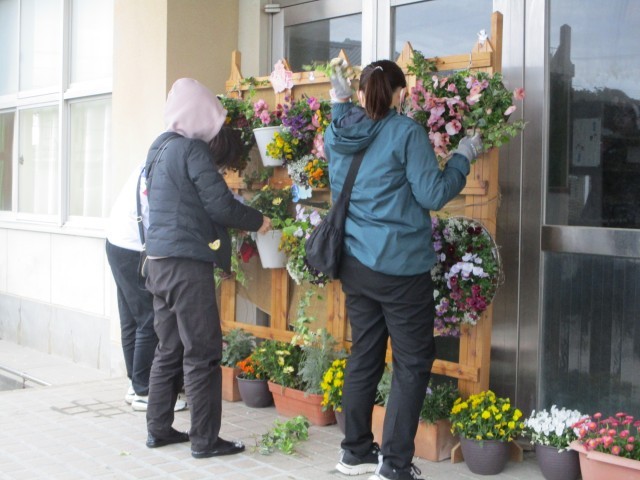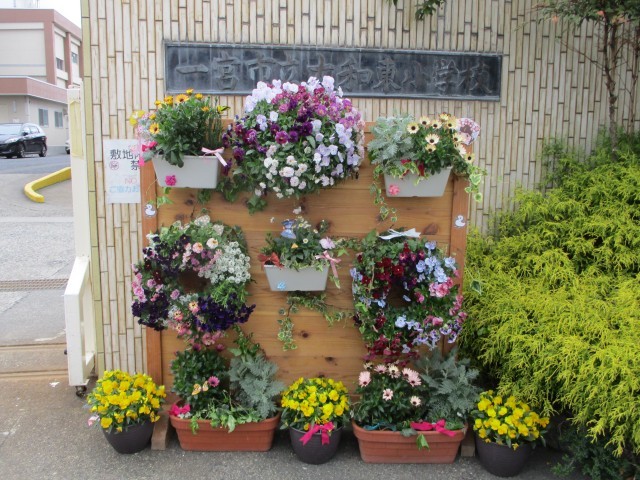 新入生のみなさんへガーデニングボランティアさんからお花のプレゼントがありました。