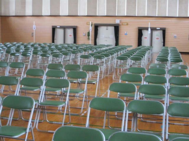 6年生の有志と教職員、ボランティアさんで会場を整えました。