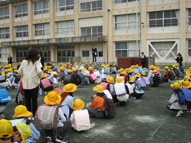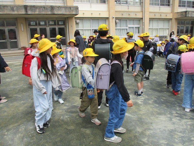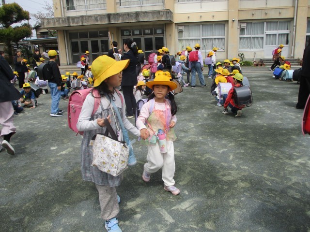 通学班ペアの子が1年生を迎えに来て自分の班の場所へ連れていってくれました。