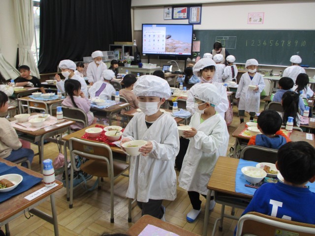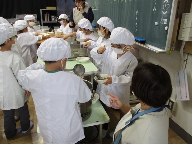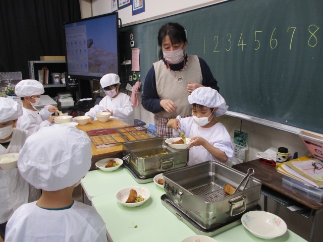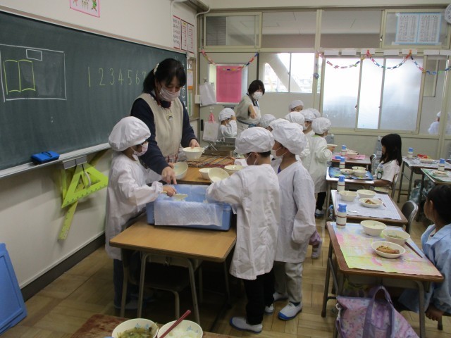「いただきます」のあとに自分の食べられる量に調整をしてから食べます。