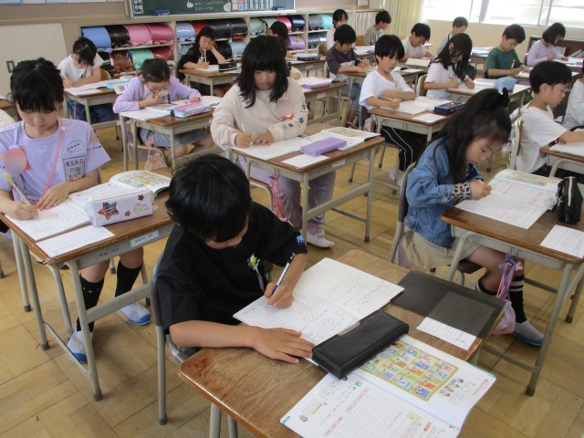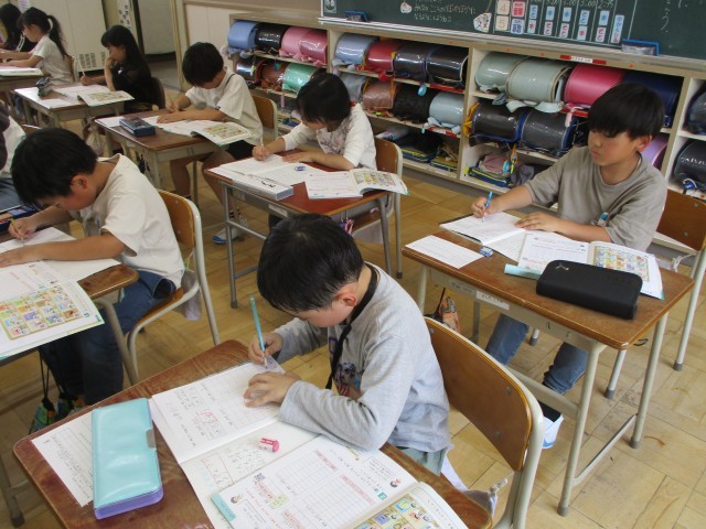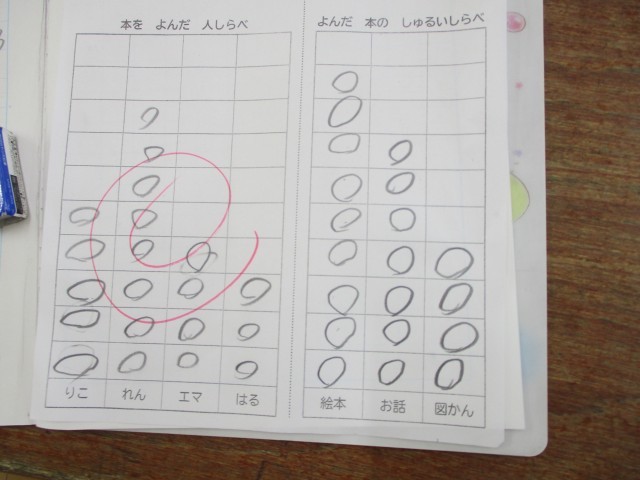 算数の時間に教科書で「本を読んだ人調べ」や「読んだ本の種類調べ」をしました。