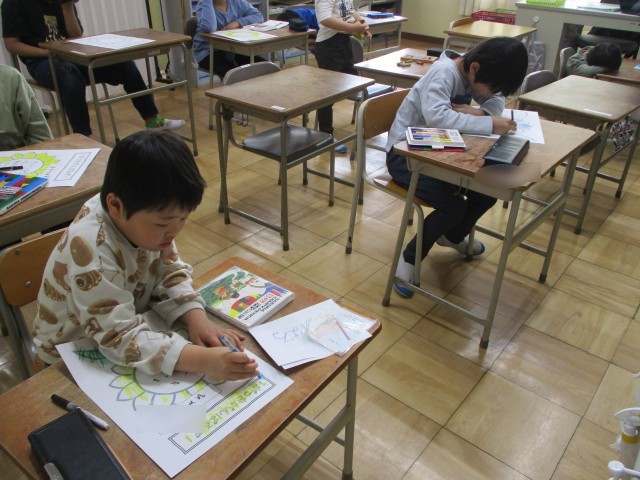 ひまわりの花びらの色塗りはそれぞれ個性がでてすてきな作品になりました。