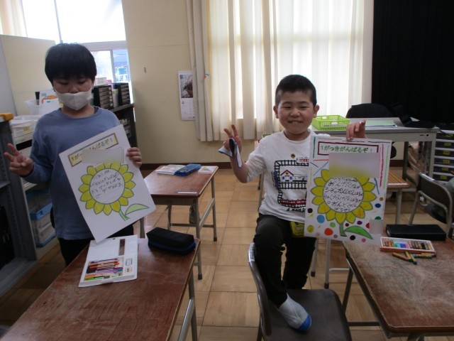 ひまわり学級なのでひまわりの絵の中に自分の思いや願いを書きました。