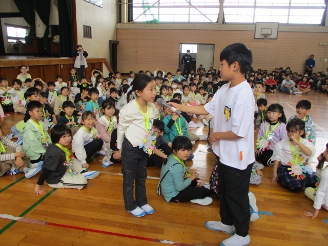 「ひがしっ子コーラス」では該当する子が立って「ひがし~っこ!」と言います。
