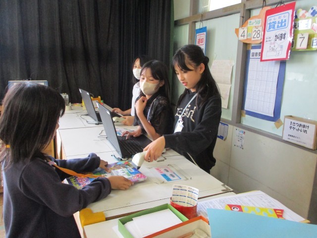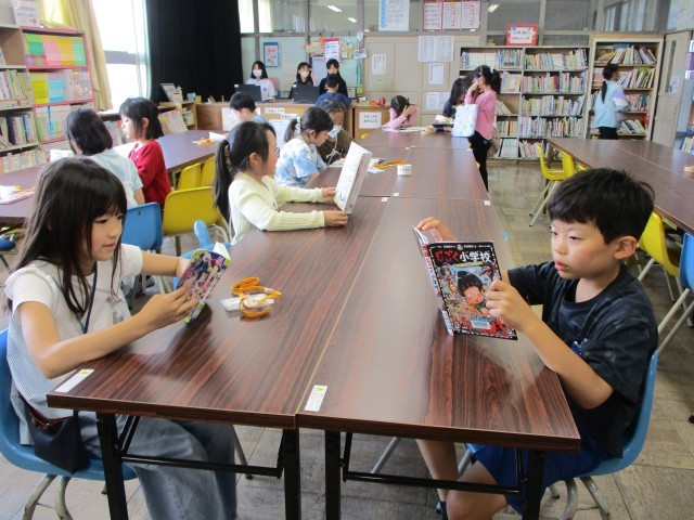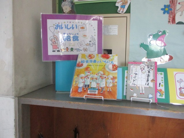 廊下には「おいしい給食」というテーマで集められた本がありました。
