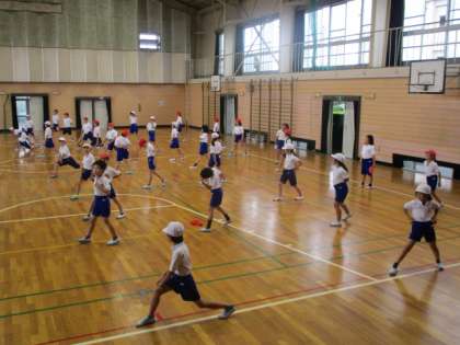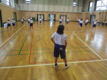 7月10日(金)体育の授業 4年生 公開日 2020/07/10 更新日 2020/07/10 4年 大きく広がって体操をしています。 限られたスペースでできるかぎり距離をあけて行っています。 熱中症対策で水分補給もしています。