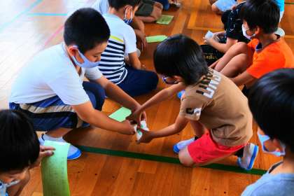 10月2日(金)ミニおもちゃまつり 2年生 公開日 2020/10/02 更新日 2020/10/02 2年 今日は、1年生のお友達を招待して、ミニおもちゃまつりを開きました。自分たちの作ったおもちゃの遊び方を優しく説明する、頼もしいお兄さん、お姉さんの姿をみることができました。