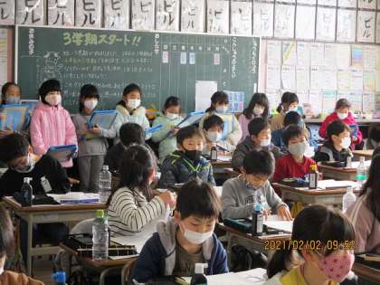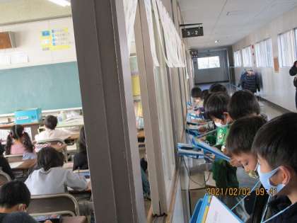 生活科の学習で、3年生から始まる学習の「習字・社会・理科」を見学させてもらいました。机の上に並ぶ習字道具や、グループごとの実験の様子など、興味津々で、「はやく3年生になりたいな。」と感じた子が多くいました。3年生に向け、2年生のまとめをしっかりしていきましょう!!