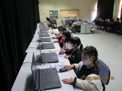 5時間目に初めてパソコンの授業をしました。パソコン室の使い方を学習したり、マウスを使ってゲームをしました。楽しみながら、「クリック」や「ダブルクリック」「ドラッグ」の操作の仕方を覚えることができました。