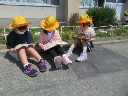 23日の「子ども読書の日」に合わせて、「青空あそぶっく」が行われました。ボランティアの方に大きな本を読んでいただいたり、自分が選んだ本を読んだりと、読書を楽しみました。これからも、たくさんの本をふれあっていってほしいです。