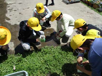 今日は理科の授業で観察を行うツルレイシの種を観察して、その後種まきをしました。想像以上の種の大きさに驚いたり「亀みたい」と言ったり、新たな発見をしていました。これから、発芽したり育っていくのがとても楽しみです。