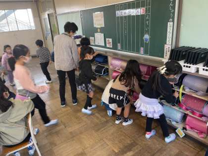 4月8日(金) かばんはどうやって置くのかな【2年生】 公開日 2022/04/08 更新日 2022/04/08 1年 「後ろのロッカーはどんなふうにすればよかったかな」 生活のルールを確認して、かばんを整頓してあげました。 安全に教室で過ごせるように、みんなで心がけていきましょう!