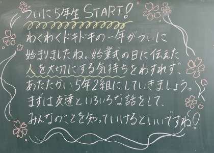 4月8日(金) 人を大切にする気持ち!【黒板メッセージ(5年生)】