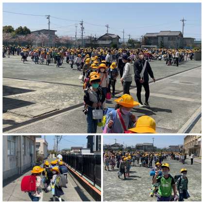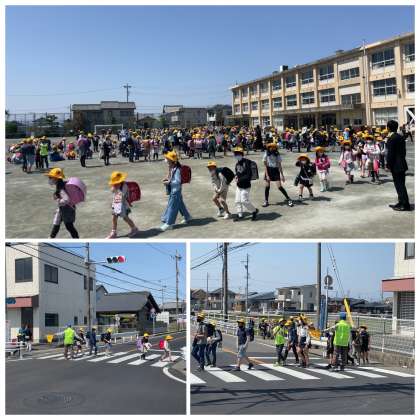 今日も児童みんなが揃って一斉下校をしました。地域のボランティアの方や担当の先生、班長さん副班長さん、班のお兄さんお姉さんに導かれて、1年生のみなさんも安心して笑顔で帰ることができましたね。みんなのやさしさにありがとうございます!