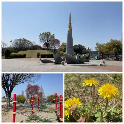 タンポポがいっぱい咲いている丘がありました。サクラの花もまだまだきれいでしたよ。