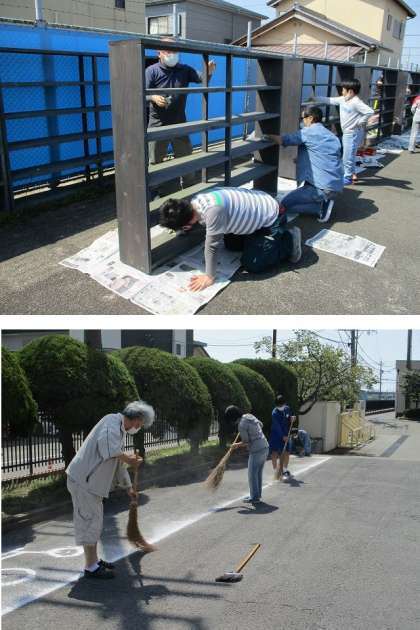 本年度もファミリーボランティア(FV)の活動が行われました。1,水泳指導に備えてプールの靴箱の整備、2,公開日に備えて駐輪場のライン引きを実施しました。卒業生ご家族と在校生ご家族で和気あいあいと作業に取り組み、すっかりきれいになりました。いつもありがとうございます。楽しく活動するFVにご興味のある方は、次回5月8日(日)の9時20分ごろに学校の校長室へお越し願います。お待ちしています。今年度のFVの予定はこちら!