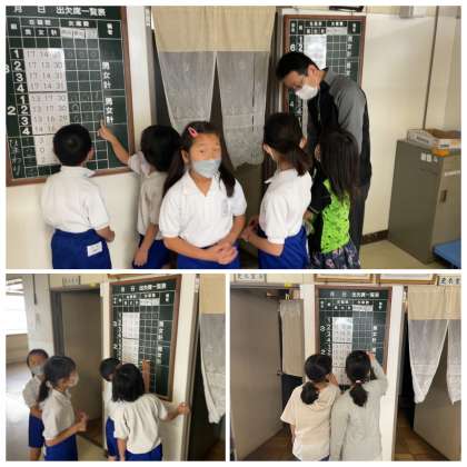 4月11日(月) かかりのしごと、はじめたよ! 公開日 2022/04/11 更新日 2022/04/11 ひがしっ子ライフ 校長室前にはクラスのお友達の出席の様子を記入する黒板があります。今朝は、かかりになった子が記録をしに来てくれました。これからよろしくお願いします。