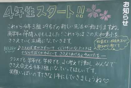 4月11日(月) みんなで支え合えるクラスに!【黒板メッセージ4年生】