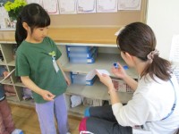 4月19日(火) 1年生の授業【こくご】 公開日 2022/04/19 更新日 2022/04/19 1年 1年生の機能の国語の授業の様子です。ひらがなの「ち」を書く練習をしていました。先生からアドバイスを受けながら、マスの中に大きく、バランスよく書けるように頑張りましたね。