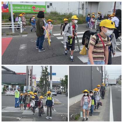 PTAや保護者のボランティアのみなさんも、早くから交差点に立ち、優しく声をかけていただきながら見守りをしていただきました。感謝感謝です!ありがとうございました。