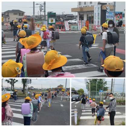 今朝の登校の様子です。班長さん、副班長さんが中心となって、班のみんなで一列歩行に心がけて安全、安心に登校することができました。班のお兄さん、お姉さん、ご苦労様でした。