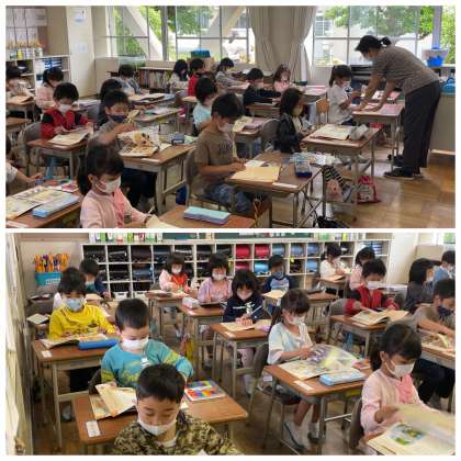 1年生の昨日の道徳の授業の様子です。係の仕事への取り組みをみんなで確認して、「まなびのきろく」にようすを書き込んでいました。とてもよくできると、5枚の花びらをぬることができます。たくさんがんばって、いっぱい花を咲かせられるように頑張りましょうね。