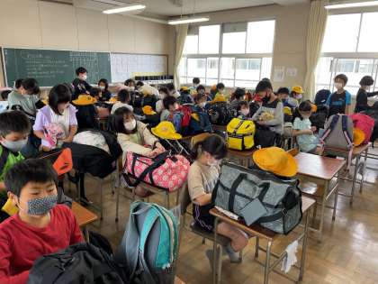 5月12日(木) 野外教育活動の様子【出発前】 公開日 2022/05/12 更新日 2022/05/12 5年 出発前の教室の様子です。大きな荷物の準備は大変でしたが、それに負けないくらいのたくさんの楽しい思い出をもって帰ってきましょうね。保護者のみなさま、準備のサポートありがとうございました。安全に気をつけていってきます!