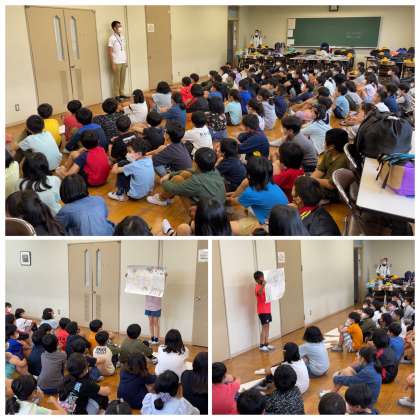 5月13日(金)野外教育活動の様子【思い出の絵発表】 公開日 2022/05/13 更新日 2022/05/13 校長室便り 学年みんなで集まって、グループで作った「思い出の絵」と漢字を選んだ理由を発表しました。みんなが協力して、絆を深めることができたと感じてくれていることが伝わってきました。流石5年生です。残りの時間も周りの人に心配りをして、楽しい時間を作れるように頑張っていきましょうね!