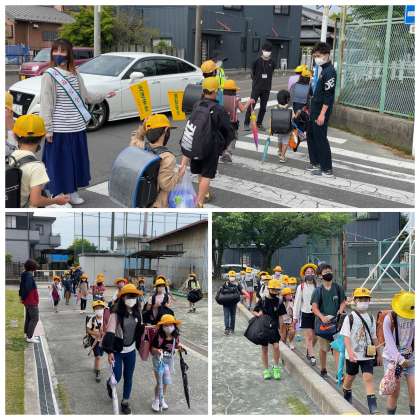 雨が心配されていましたが、朝は降られずに登校することができました。今日から5年生が野外教育活動に出かけるので、大きな荷物をもっての登校でした。見守りをしながら「がんばってきてね」「楽しんできてね」と声をかけていただき、5年生もうれしそうでした。交通の安全・安心だけでなく、子どもたちの元気も応援していただいて感謝感謝です!よい思い出ができるように、職員でしっかりとサポートしてきたいと思います!