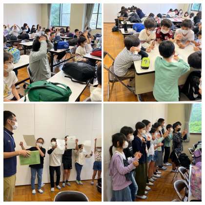 5月12日(木) レクリエーション 5年生 公開日 2022/05/12 更新日 2022/05/12 ひがしっ子ライフ 雨のため、芝生広場でのスポーツレクリエーションはできませんでしたが、研修室でクラスごとにレクリエーションをしました。 ボディパーカッション、落ちた落ちた、お絵かきリレーなど、みんなで協力して楽しみました! ボディパーカッション、みんなの音がそろった気持ちよさに盛り上がりました。