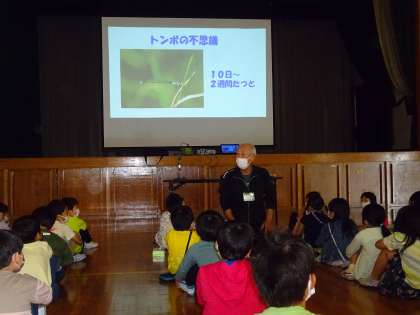 5月12日(木) トンボ教室 その1 2年生 公開日 2022/05/12 更新日 2022/05/12 2年 今日は、NPO法人トンボと水辺環境研究所の講師の先生に来ていただき、トンボ教室を行いました。トンボについてのいろいろな話をしていただきました。初めて知ることもたくさんあり、子どもたちはたくさん学ぶことができました。 月曜日は、2年生のみんなで学校のプールにいる「ヤゴをたすける」予定です。保護者の皆様、荷物の準備などでご迷惑をおかけしますが、ご協力をよろしくお願いします。 2年生