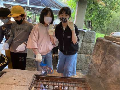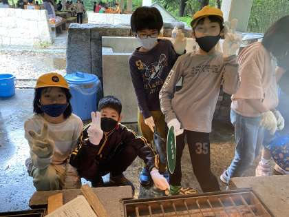 5月13日(金) 野外教育活動 5年生 公開日 2022/05/13 更新日 2022/05/13 5年 野外教育活動プレイバック。 野外炊飯スタート!まずはかまど係が火をつけます。力を合わせて取り組みます。 5年生