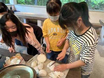 野外教育活動プレイバック。 カレーの完成に向け、それぞれが責任を持って取り組みます。
