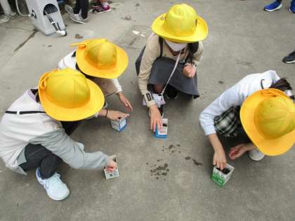 昨日、ツルレイシの種まきを行いました。固め過ぎないように、そっと土をかぶせる姿がとても微笑ましかったです。
