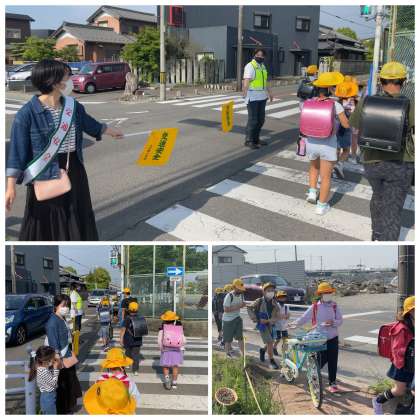 今日も多くのPTAボランティアと地域ボランティアの方に見守っていただき、安全安心な中で登校をすることができました。ありがとうございました。今日は一宮警察の方から交通安全指導を受けるので、自転車を準備してくれた子もいて大変だったと思いますが、みんなで心配りをしていつも通りに学校に来ることができていました。警察の方から教わったことを、通学班の友だちやおうちの人にもぜひ伝えてくださいね。