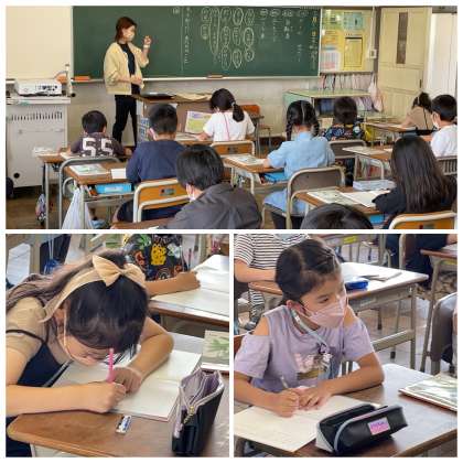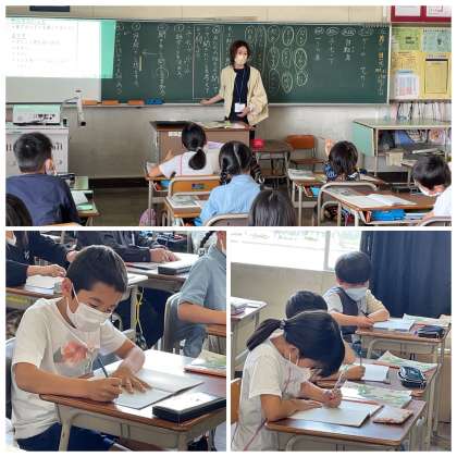 3年生の国語の授業の様子です。「もっと知りたい!友だちのこと」というテーマで学習を進めていました。友だちのお話をよく聞いて、さらに知りたいことを聞くためにはどのように尋ねたらよいか、みんなで意見を出し合って考えを深めていきました。