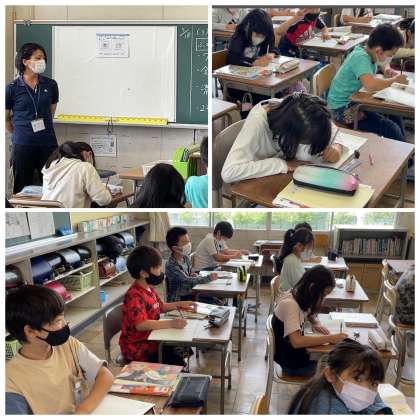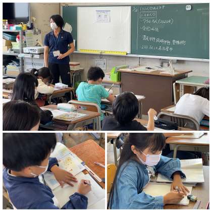 4年生の社会科の授業の様子です。愛知県の人口の様子について、全国と比較したり市町村ごとの様子を確認したりしていました。