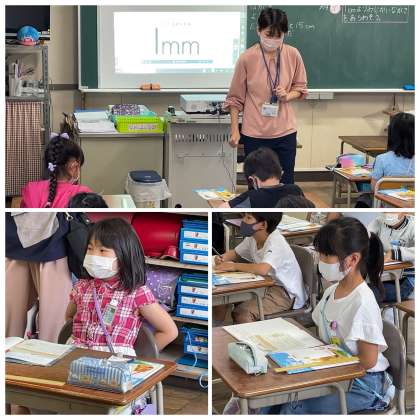 2年生の算数の授業の様子です。「1cmよりもみじかいながさをあらわそう」というテーマで学習をすすめていました。1mmのながさのたんいについて、書き方や意味を知ることができましたね。