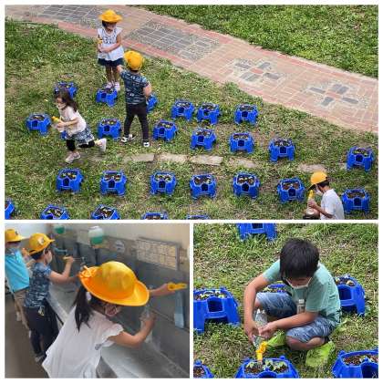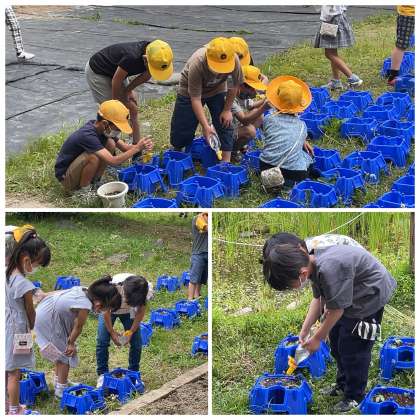 きょうも、おみずをあげるために、なかにわにたくさんのこがあつまっていました。