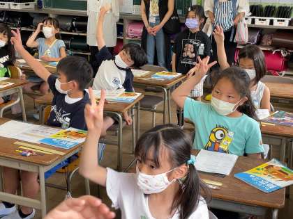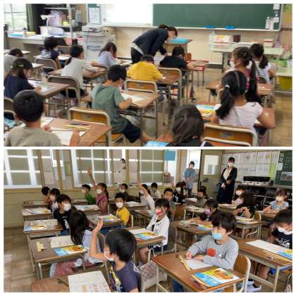 2年生のさんすうのじゅぎょうのようすです。「ものさしをつかって直線をひこう」というテーマで学習を進めていました。長さを2つの点でとってものさしをつかって直線でむすぶことがわかりましたね。